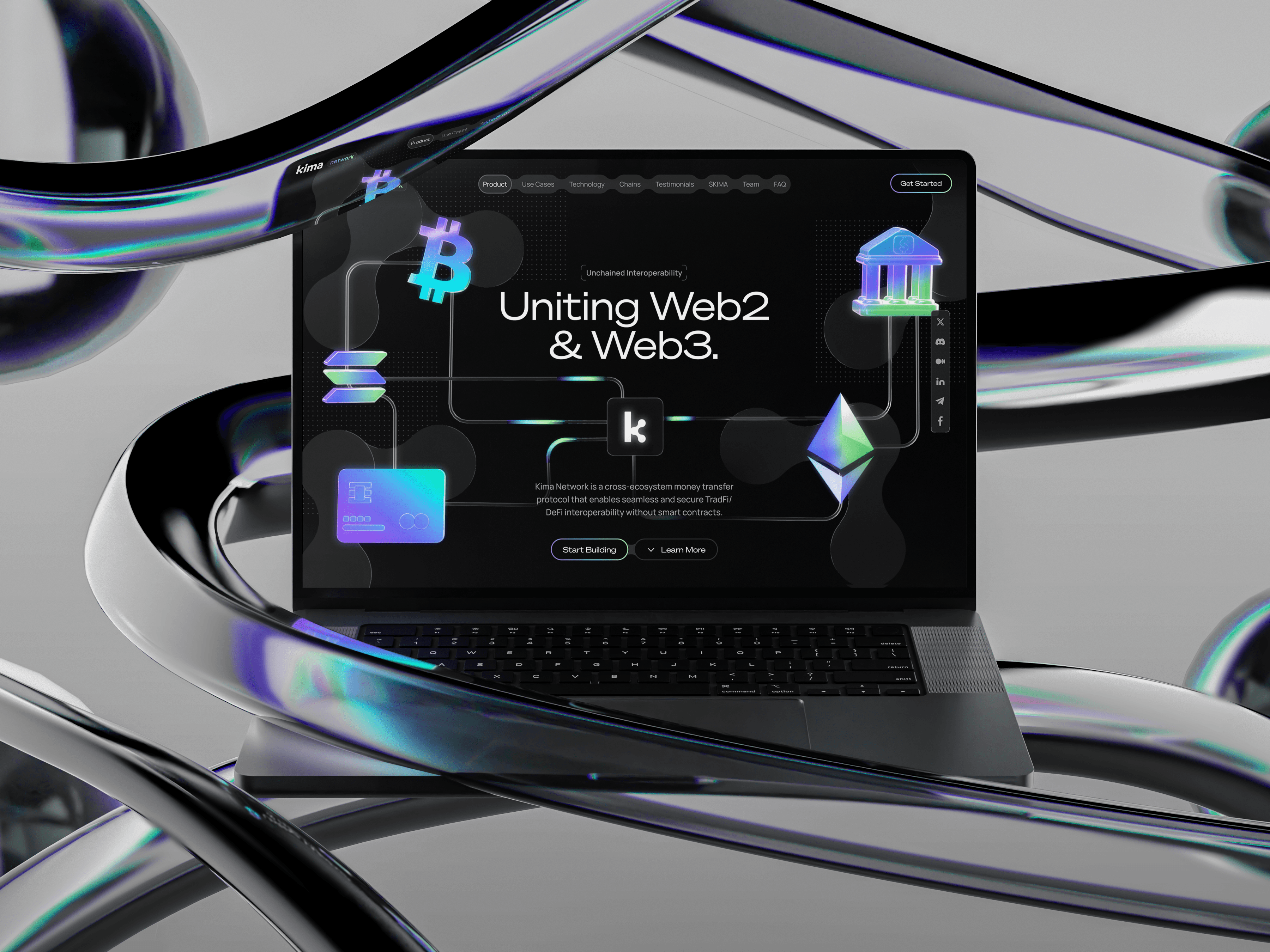 To represent liquidity flow and interoperability, we introduced a gooey blobs concept: abstract, fluid shapes symbolizing the movement of value across systems.